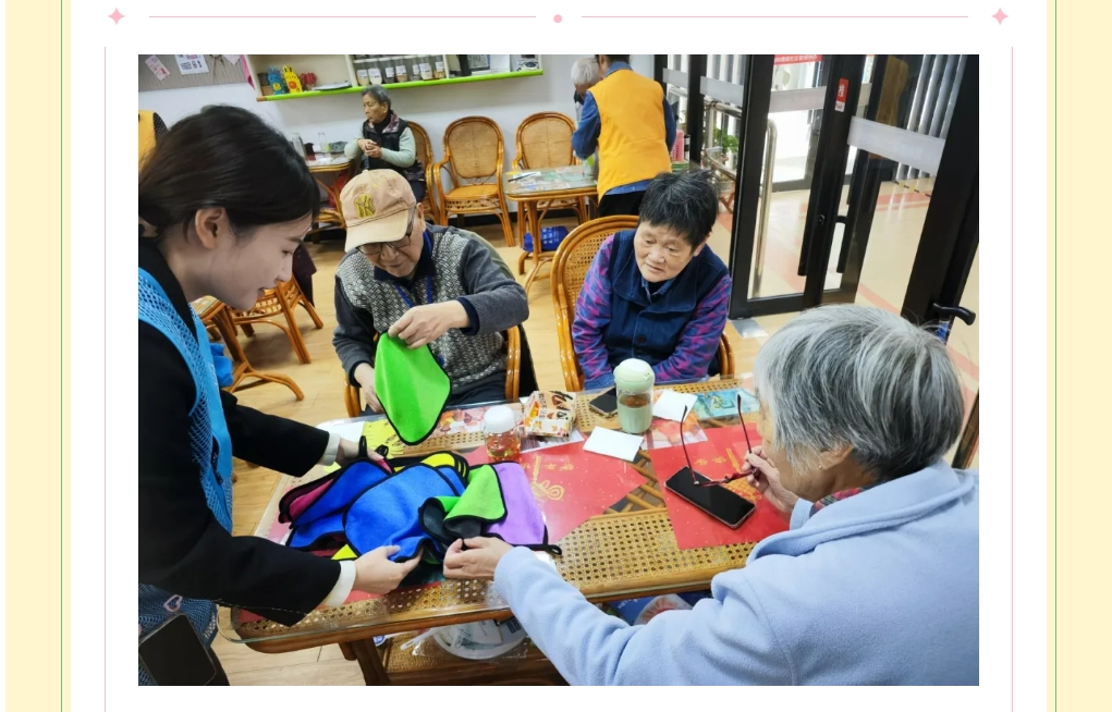 活动最后给康桥镇的长者们挑选了他们喜欢的颜色清洁布,笑容溢于言表。希望在他们今后的生活中,色彩能够伴随左右。